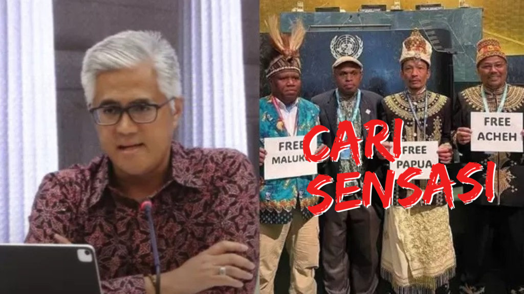 Berdasarkan sebuah video viral di medsos terlihat ada sejumlah orang berpakaian adat membawa tulisan ‘Free Papua’, ‘Free Maluku’ dan ‘Free Aceh’ di sebuah forum PBB United Nations Permanent Forum on Indigenous Issues (UNPFII).