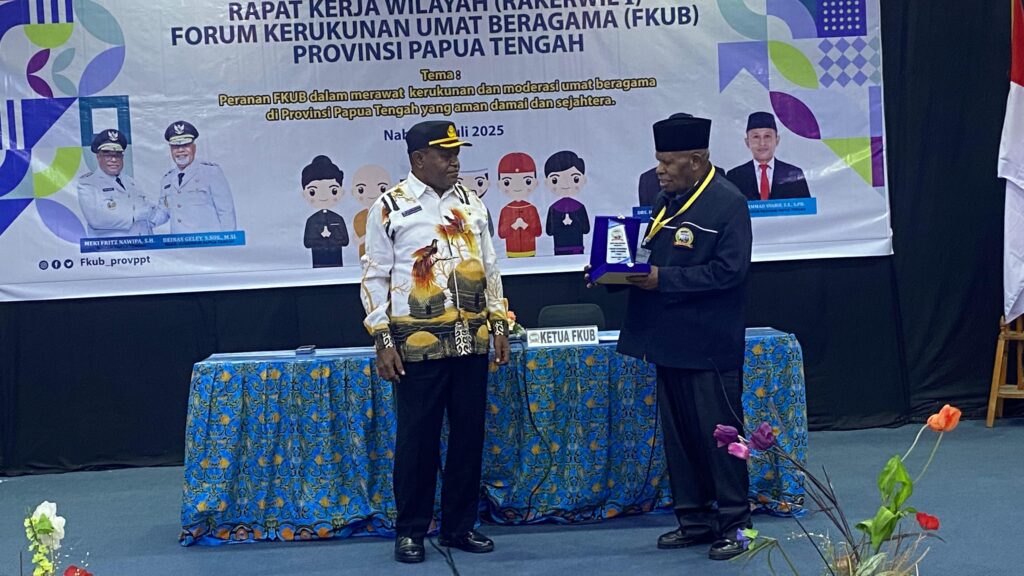 Papua Tengah.News – Gubernur Papua Tengah resmi membuka Rapat Kerja Wilayah (Rakerwil) I  yang di gelar Forum Kerukunan Antar Umat Bergama (FKUB) Papua Tengah, berlangsung di Auditorium LPP RRI Nabire, Kamis (3/7/2025).