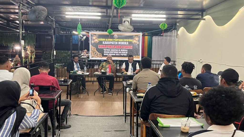Forum Alumni Cipayung Mimika menggelar buka puasa bersama yang dirangkai dengan diskusi publik bertajuk “Rotasi Jabatan di Mimika: Menjaga Meritokrasi dan Keadilan Bagi Orang Asli Papua (OAP)”. Kegiatan ini berlangsung di Kabupaten Mimika, Kamis (19/3), dan dihadiri langsung oleh Bupati Mimika, Johannes Rettob.