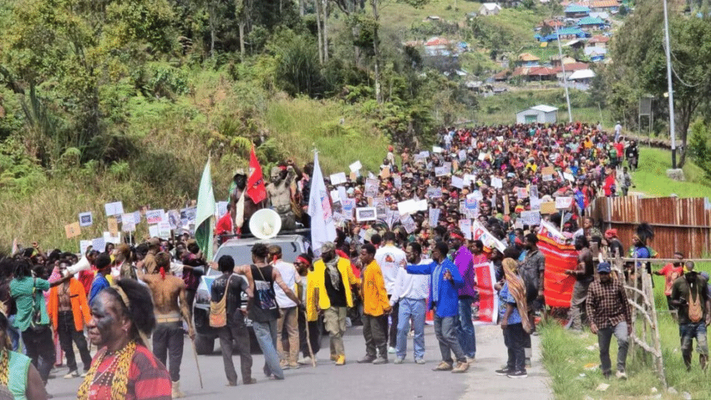 Intan Jaya — Ikatan Pelajar dan Mahasiswa Moni Intan Jaya (IPMMO) se-Jawa dan Bali bersama Gerakan Pelajar, Mahasiswa, dan Rakyat Intan Jaya (GPMR-IJ) menyerukan enam tuntutan mendesak terkait situasi keamanan dan kemanusiaan di Kabupaten Intan Jaya, Papua Tengah.