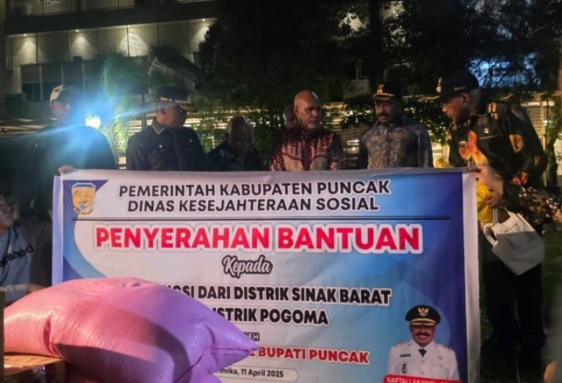 Bupati Puncak Elvis Tabuni di Timika, Sabtu, mengatakan bantuan tersebut meliputi 10 ton beras, mie instan 20 karton, telur 60 rak dan uang tunai senilai Rp170 juta.