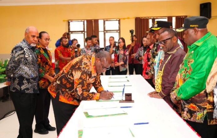 Papua Tengah.News – Pemerintah provinsi Papua Tengah mencanangkan sembilan program prioritas sebagai fondasi pembangunan jangka panjang di provinsi baru ini. Hal tersebut mengemuka dalam rapat kerja (raker) gubernur bersama delapan bupati se-provinsi Papua Tengah, Kamis (25/9/2025) di Mulia, kabupaten Puncak Jaya.