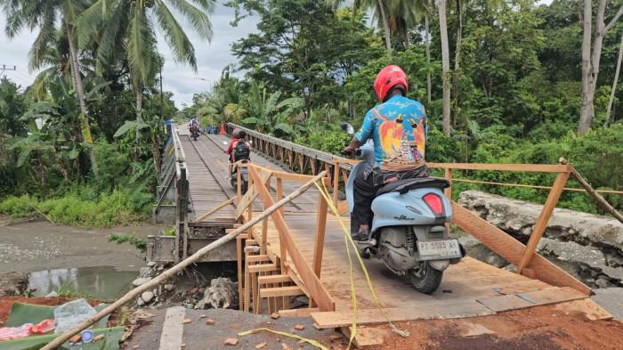 Melihat kondisi ini, warga mulai berinisiatif untuk membuat penyanggah darurat untuk permudah akses transportasi.