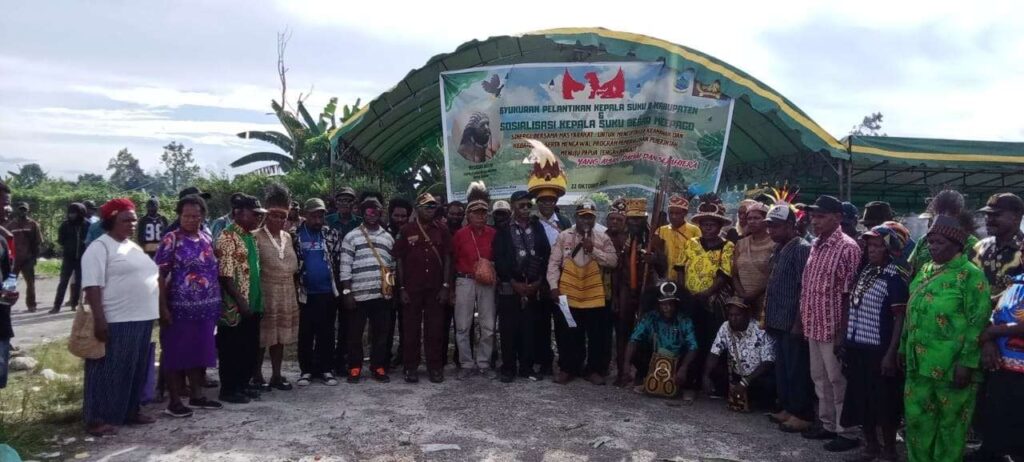 Papua Tengah.News – Syukuran pelantikan kepala suku delapan kabupaten dan sosialisasi kepala suku besar Meepago berlangsung di Kelurahan Bumi Wonorejo, Rabu (22/10/2025). Kegiatan ini mengusung tema “Sinergi Bersama Masyarakat untuk Menciptakan Keamanan dan Kedamaian serta Mengawal Program Pembangunan Pemerintah Menuju Papua Tengah yang Aman, Damai, dan Sejahtera.”