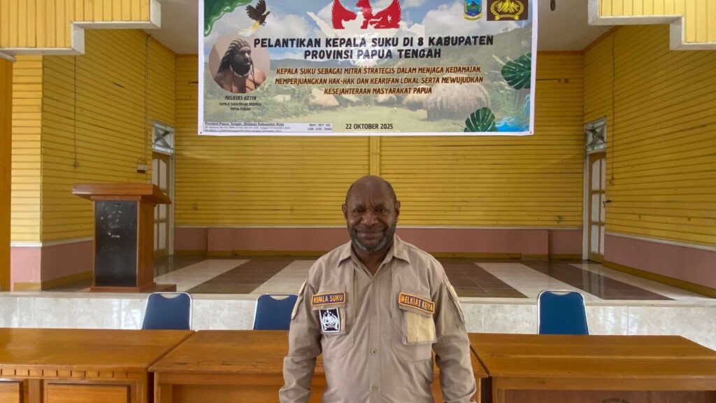 Papua Tengah.News – Kepala Suku Besar Meepago Papua Tengah, Melkias Keiya, menegaskan pentingnya sinergi antara pemimpin adat, pemerintah, dan aparat keamanan dalam menjaga kedamaian di Tanah Papua. Hal itu disampaikannya saat melantik delapan kepala suku wilayah adat Meepago di Aula PUPR Jalan Merdeka Karang Mulia, Nabire, Rabu (22/10/2025).